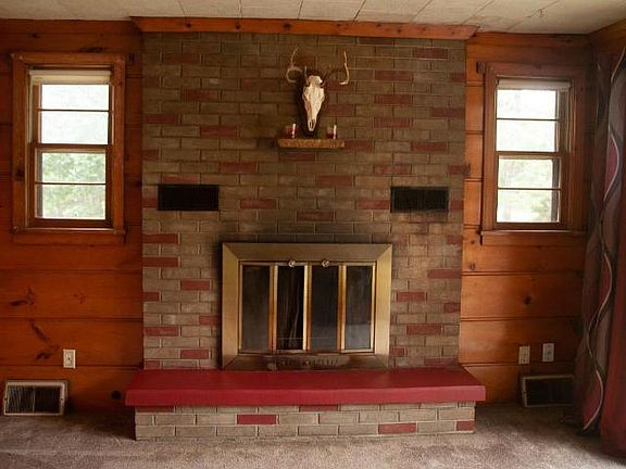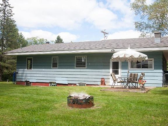 This 2 bedroom, 1 bath home is connected to the snowmobile trail. Also, close proximity to other recreation and dining. This house sits on a beautiful 1.37 acre lot and the home hold features such as floor to ceiling brick fireplace, large living room window, built in shelving, and an outdoor patio.