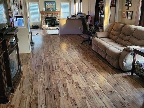 This property is MOVE IN READY and perfect for a family who wants to have plenty of outdoor space. This home has 3 bedrooms, 2 bathrooms, brand new hardwood laminate flooring,updated ceiling fans, wood burning fireplace, updated lighting. The kitchen has plenty of counter space and the cabinets have recently been painted and updated appliances. The master bedroom is very spacious and adjoins with the master bathroom which has two separate vanities, walk in shower, two walk in closets, two commodes, and has brand new paint. There are two additional bedrooms that have been updated with new flooring and paint also. The guest bathroom has been updated. There are inside utilities with updated washer and dryer. As you walk out of the back door of this spacious home you will see a large wooden deck that overlooks the back of the property. This deck will also lead you to the detached 2 car metal garage. This garage has electric installed, an a/c unit and will be great to keep your vehicles in, for storage, or a nice workshop. This property sits on a beautiful 1.05 acres and has a BRAND NEW FENCE all the way around that was installed this year! The property also has a brand new drainfield installed this year. The roof was updated in 2019.
