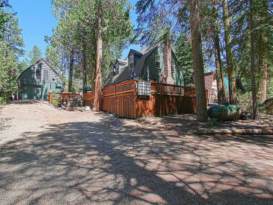 This cabin has it all. Great location, rebuilt in 2014 after a fire. This cabin has newer plumbing and on demand hot water, newer wiring, newer roof, newer flooring, newer kitchen, and so much more. Central heating and central vac are both found in the cabin, along with very large laundry room, 3 large bedrooms and 1.5 baths. Kitchen is charming, has great appliances and lots of counter space. Great room is large enough for a big family or group and the detached garage has a huge room above which currently houses a train set which the owner will leave for the right offer if your buyer would like. Cabin is on a large lot-almost 1/3 acre, wonderful location, large rock outcropping in back, lots of parking on the side of the cabin, large deck and all in the best condition you will find in any cabin. The location is very close to the Village of Shaver Lake and to the lake, just a short trip to China Peak. This is a don't miss cabin, some furniture will be included for right price.