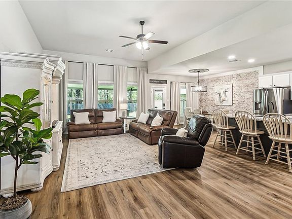 Step outside to a spacious covered back porch, perfectly positioned to capture breathtaking western sky views with no future development in sight. The home also boasts a large driveway with ample space for boat and RV storage, plus an oversized garage equipped to hold at least 24 storage bins—ideal for seasonal décor and more! The home is fully equipped with gutters surrounding the entire exterior for added durability and protection.
