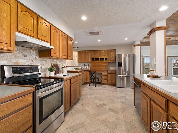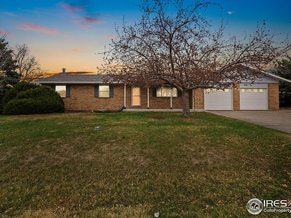 SPACIOUS HALF-ACRE LOT in South Loveland - FA Zoning, low county taxes, and fully UPDATED! Welcome to this well maintained 4-bedroom, 3-bath brick ranch home nestled on a generous half-acre lot in Loveland. Recent updates (2023-2025) include NEW interior paint, carpet, roof, gutters, boiler, cassette-style A/C units, and a hot water heater. With a finished basement and plenty of space inside and out, this property offers comfort, versatility, and room to grow. Additional updates include: newer sewer line, triple pane windows, upgraded electrical, and 220V electric in the garage. The main level features a bright and convenient layout with three bedrooms, a full hall bath, updated ensuite bathroom, large living room with a fireplace and an oversized open dining area with lots of windows and access to the large back yard. Two fully updated main-level bathrooms featuring travertine tile flooring, elegant tile surrounds, brand-new vanities, modern lighting-truly the works! The finished basement expands the living space with a large family room, oversized rec with a cozy wood burning stove, ideal for a home gym, game room, or theater-an additional bedroom, and a 3/4 bath, offering a perfect setup for guests or extended family. Enjoy the sunroom, featuring ample windows that flood the space with natural light, an on-trend tongue-and-groove ceiling, and plenty of room to live and entertain. Outside, enjoy the privacy and possibilities of a true Half Acre! Featuring a large fully fenced in backyard with a sprinkler system-ideal for entertaining, gardening, or simply relaxing. With mature landscaping and room for outdoor projects, this lot is a rare find. Located in a quiet neighborhood with a low annual HOA and easy access to local parks, schools (across the street from Carrie Martin Elementary), and shopping, this Loveland gem is move-in ready and waiting for you to make it your own. See attachments or reach out to the listing broker for a full list of improvements!