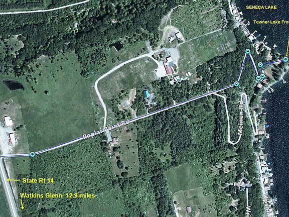 SENECA LAKE FRONTAGE ON POPLAR POINT (aka Keady Point) -Level drive-to surveyed vacant lot with 84’ feet of frontage on the North side and to the tip of the point. Fantastic view up, down, and across the lake and a nice gradually sloping beach of fine shale, easy on the feet and boats coming ashore. A great camping or building site with utilities available on lot. As owners, we camped here very comfortably one summer in a 33' motor home. Lot distance to State Route 14 is one mile, from there; Watkins Glen-13.3 mi; Severne Road (NYSDEC Boat Launch)-1.5 mi; Dundee- 5 mi; Pen Yann - 11 mi, Geneva - 21 mi. Priced at $165,000, Owner financing by Land Contract is available with flexible terms to accommodate the buyer. Seller is ready to close immediately and will furnish all necessary paperwork initially and Deed with Title Search at completion of contract. Oil and gas rights convey with Deed at completion of contract, but are reserved during the Contract period. This parcel is assessed for tax purposes in Yates County, Town of Starkey at $193,800. If you are interested in this property or would like more information, please the owner directly by phone Thank you for your interest.