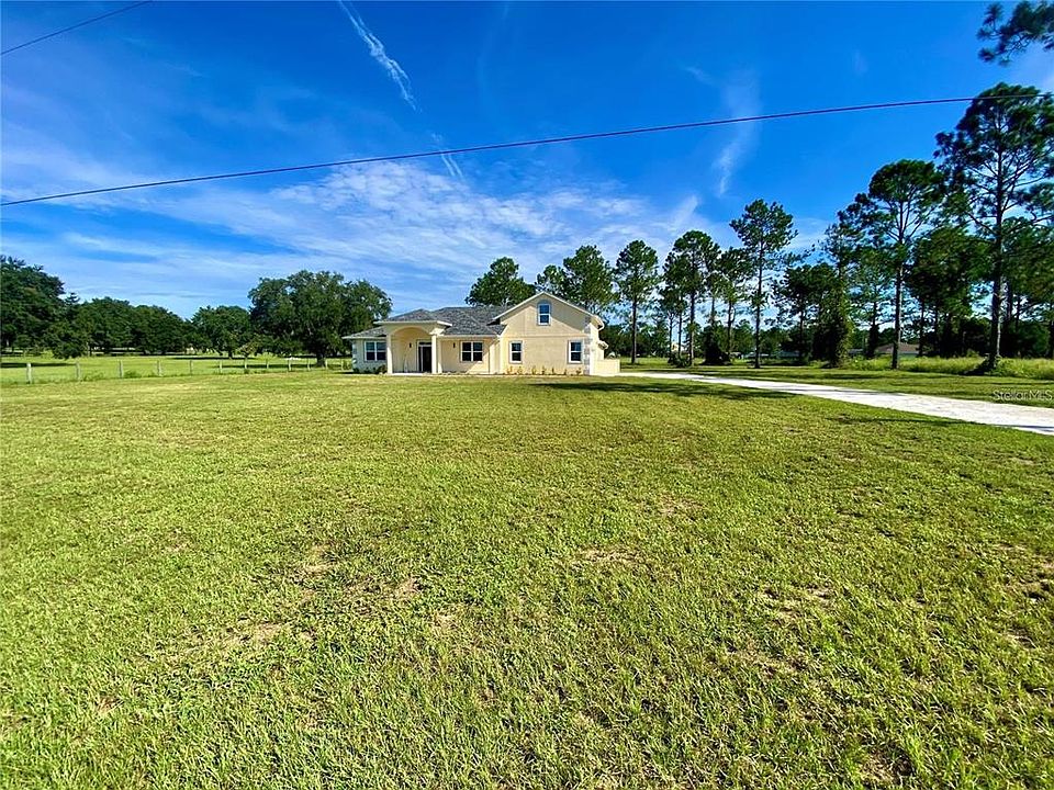 Beautiful 4 bedroom, 3 and a half baths situated on 1.27 acres with NO HOA, built in 2022. As you enter the home, you will appreciate the workmanship throughout the house. Its open concept gives you plenty of room to entertain family and friends. The home features tray ceilings, crown molding, wainscoting in dining, back screened porch, and concrete slab for your grilling, inside utility, decorative fireplace, pot filler over the stove, Granite counter tops in kitchen and bathrooms. The guest bath has a unique barn door you must see. Jack and Jill bathroom in bedrooms two and three. The upstairs bedroom is above the garage and has a full bathroom. The master bath has double vanities, two walk in custom closets, walk in shower and tub. You will have plenty of outdoor living space room to build a pool, bring your RV and boat and possibly build an exterior building. Enjoy the charming front porch, exterior lighting, exterior outlets for your decorations, seamless gutters and oversize driveway.