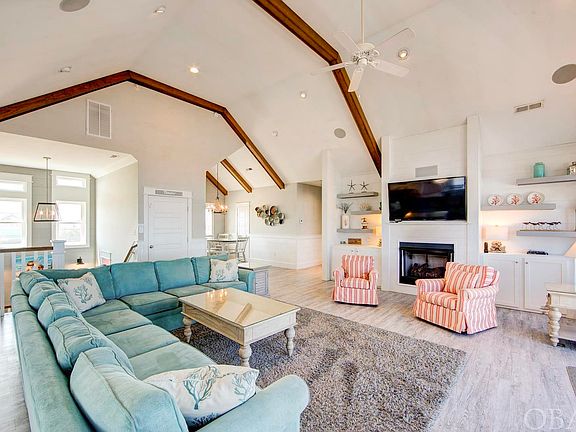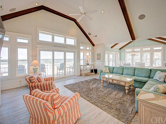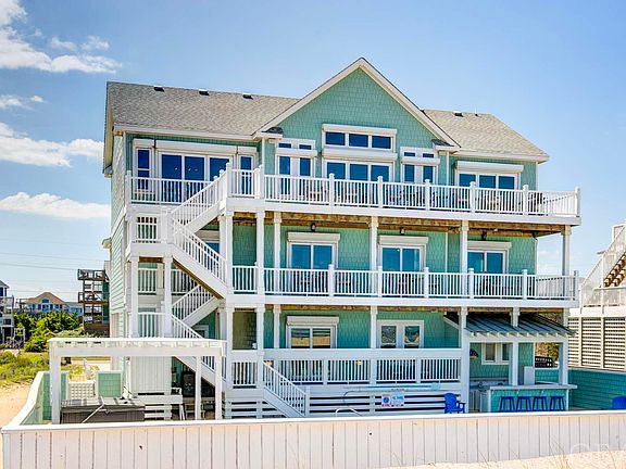 Here is one home you certainly do not want to miss! This beautiful and superbly maintained oceanfront home boasts six bedrooms, seven full and two half baths and every amenity you could possibly want in a vacation home. It's also conveniently located in the heart of Avon near the Avon Pier, grocery store, restaurants and shops. Enter through the under-house dry entry into the mud room, where you can shed all those sandy shoes and beach towels. Next, make your way up to the first floor, where all the fun happens. The game room with pool table, kitchenette with a full-sized refrigerator and home theatre will surely entertain. Down the hallway, you'll find a half bath and double bunk bedroom with an ensuite bath that the kids will love. On the second floor, you'll find four bedrooms, each with an ensuite bath, a bonus room with a pull-out couch for watching TV or reading and the laundry room with two stackable washers and dryers. An outstanding panoramic ocean view will greet you as you reach the top floor, along with high beamed ceilings, and board and batten accents. Enjoy two dining areas, a spacious living room, a half bath and the primary bedroom with a classic ensuite bath. With its beautiful coffered ceiling, the large kitchen has stainless steel appliances, a gourmet commercial oven and cooktop, two refrigerators, two dishwashers, and an Island with an extra sink, making entertaining easy. Finally, don't forget about the outdoor entertainment area, where relaxation is the top priority. Whether you are soaking in the hot tub, floating in the pool or grabbing a drink from the tiki bar, you will never want to leave The Kinnakeeter! An outdoor surround sound speaker system has been installed so that you can listen to your favourite vacation playlist on repeat. There is also a convenient full outdoor bathhouse near the pool. Everything about The Kinnakeeter was created with ease of use and comfort in mind. All decks and railings are built with low-maintenance Trex decking, there's long-lasting Plywood deck furniture, and the upstairs windows are tinted to keep the sun from glaring in. There is so much to love about this fantastic home that you'll just have to come to see it for yourself. Oh, and did I mention it's also a great income producer? With over $195K in rental income so far this year, make your next investment this dream vacation home!