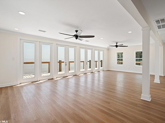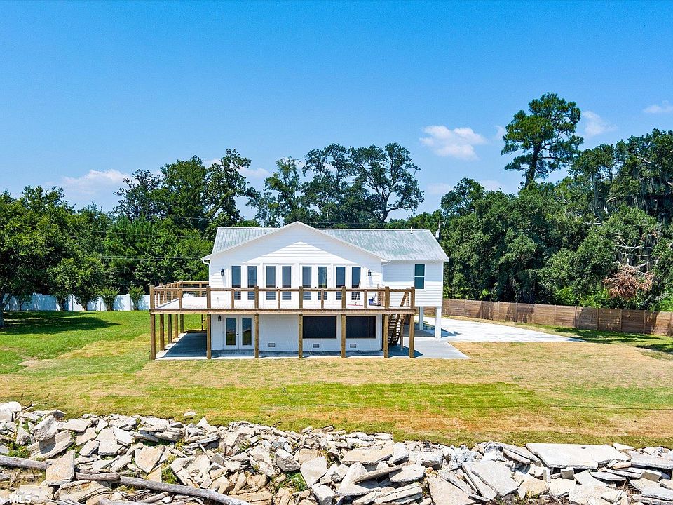 Completely renovated... over 300 ft of waterfront on Mobile Bay!!! Don't miss out on the chance to own this extraordinary waterfront home boasting breathtaking views of Mobile Bay. As soon as you step inside, you'll be captivated by the views through the wall of 8ft tall French doors. The living space seamlessly extends to the massive deck overlooking Mobile Bay, creating the perfect setting for grilling and entertaining. The dining area and kitchen, complete with black stainless appliances and custom cabinetry, also provide equally stunning views, you'll discover 2 charming bedrooms and full bath and a split floor plan for a private a primary bedroom suite, featuring a balcony where you can admire the bay from the comfort of your own room. Call today and find your dreams a home...Listing Company makes no representation as to accuracy of square footage :buyer to verify.