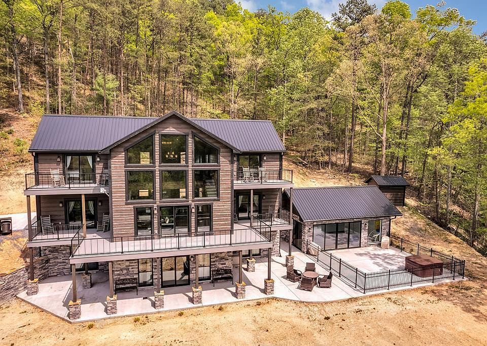Rental Estimated at $200k! Introducing a stunning NEW construction POOL cabin property situated in Wears Valley with beautiful views of the Mountains! Here is your chance to own a custom built home sitting on over 3 acres, with all the bells and whistles! This spacious home boasts high rise ceilings, 4 master suites, tile showers, and a finished downstairs to maximize your return on investment! Upon entering the property through the modern and spacious kitchen, you are greeted with views through the large windows, which leads you through to a beautiful living area. The open-concept layout allows for seamless entertaining and relaxation, with ample natural light throughout. The property also offers a loft on the upper level with another area for entertaining and 2 more bedrooms. The lower level features the gameroom, bunk room, bar and theater area; all the amenities that you don't want to miss out on! The lower level leads out to the patio which is perfect for entertaining. Outside, the property features a fenced in area with a hot tub right off of the pool room. Don't miss out on the chance to make this spectacular property your investment property or dream home. Call today to schedule a viewing! *Drone Photography was used*