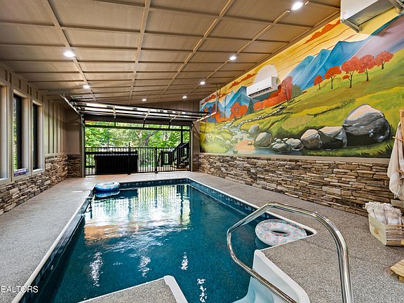 **Investor's Dream: Projected to Do $250,000+ Annually!** Introducing the ultimate Smoky Mountain retreat: A brand-new, upscale cabin that promises to captivate and delight your guests, ensuring they'll return year after year! This professionally designed, creekside, fully furnished cabin features a fully installed indoor sprinkler system to ensure peace of mind for you and your guests and showcases modern architecture, elevated decor, and a lush, park-like setting. Step out onto either of the two expansive decks and immerse yourself in the serene sights and sounds of the rushing creek, breathtaking wooded views, and crisp mountain air that perfectly encapsulates the essence of the Smokies. As you walk inside, you'll be immediately drawn to the impressive two-story stone fireplace, the heart of the home. With ample seating and a warm, cozy ambiance, this is the perfect gathering spot for families to share stories and create memories that will last a lifetime. Each of the five spacious bedrooms features ensuite bathrooms, complete with custom-tiled showers, providing ultimate comfort and privacy. A unique highlight of this cabin is the charming little nook under the stairway, specially designed for kids. Stocked with games, books, and a variety of activities, this cozy space is perfect for keeping the little ones entertained, making it a hit with families. The cabin's stunning pool area is a true standout, designed to evoke those quintessential vacation vibes. Enclosed by a large glass garage door, this indoor/outdoor space can be enjoyed year-round, regardless of the weather. Picture yourself soaking it up in the pool with the kids after a long day of hiking. As the sun sets, gather around the incredible outdoor fire pit for cozy evenings under the stars, with the soothing sounds of Webb Creek providing the perfect atmosphere for unforgettable moments. This property also features a fantastic theater room, ideal for hosting movie nights and creating memorable entertainment experiences with family and friends. Conveniently equipped with city water and sewer, this cabin provides all the modern comforts you need while still delivering that rustic mountain charm. Located just a short drive from the excitement of Gatlinburg and Pigeon Forge, you'll enjoy the best of both worlds: a peaceful, secluded setting that's still close to all the major attractions. Golf enthusiasts will also appreciate being less than a mile from the Gary Player-designed Bent Creek Golf Course. This cabin is more than just a place to stay—it's an experience. With understated elegance, modern amenities, and a tranquil setting, this extraordinary investment opportunity in the heart of the Smoky Mountains' thriving rental market is not to be missed!