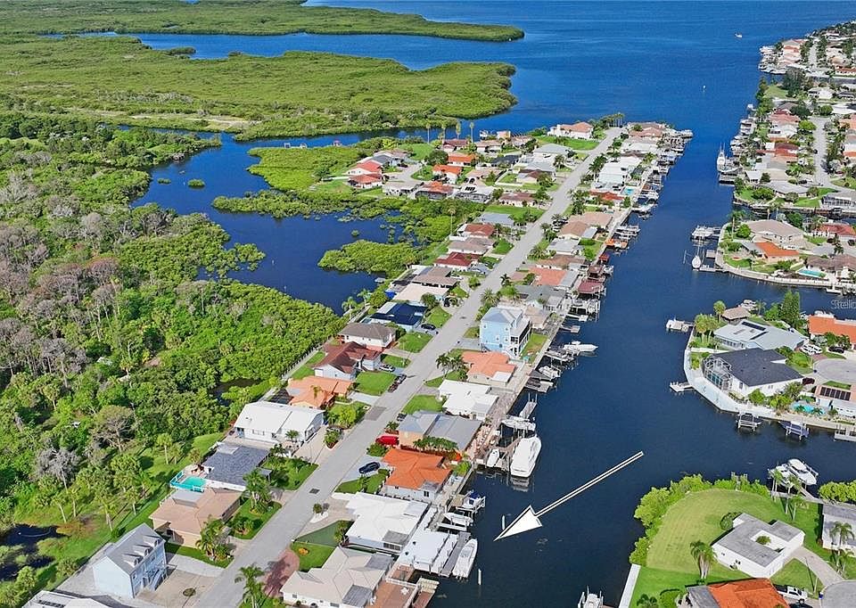 Location, Location, Location! This Gulf Harbors waterfront property has been flooded by recent storms and is ready for a fresh renovation, offering an incredible opportunity to create your dream home. All 4-point items not damaged in the storms according to the sellers. HVAC and condenser are elevated; American Standard Brand and in working order. The electrical panel has been updated and has a generator hook up added to it, and the home has been re-plumbed. The tile roof still has life as well. Newer Water Heater. This home has an oversized deck and 12000 lb boat lift. It is about one beer to the Gulf of Mexico right from your backyard. Photos of its pre-storm finishes are included for your inspiration. All of the granite counter tops were salvaged along with the sinks. It mostly just needs drywall, paint, floors, lower cabinets and bathroom vanities. The luxurious primary suite includes crown molding, marble finishes, and a walk-in shower, with the second bathroom also boasting quartz and marble details. Outside, enjoy a 1500 sq ft dock with a 40-foot floating dock and 10,000 lb boat lift, a screened lanai, and a low-maintenance yard with artificial turf. Modern amenities include updated plumbing and sealed AC ducts. Optional membership to the Gulf Harbors Civic Association ($125/year) offers year-round events, and the residents-only Beach Club ($200/year) provides access to white sandy beaches and cabanas. Conveniently located near downtown New Port Richey, this golf-cart-friendly community is your gateway to luxurious waterfront living. Ready for your renovations! Come see it today and make it your own!