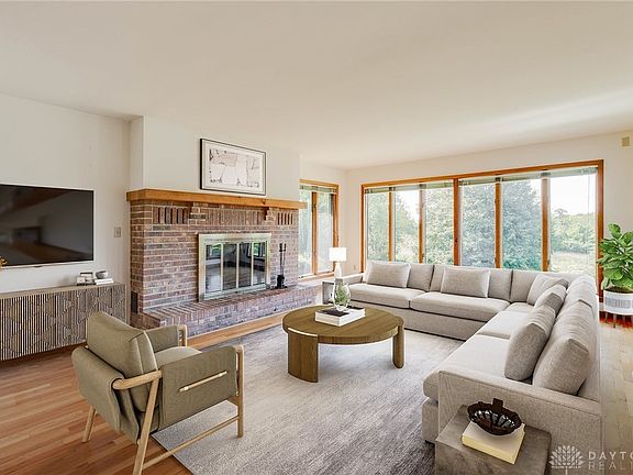Stunning one-of-a-kind property located in Bath TWP! Travel down the gated lane and behold the expanse of nearly 8 acres of picturesque landscape featuring peaks and valleys, an established organic vegetable garden (no pesticides have ever been used on the property), mature trees as far as the eye can see, a chicken house (currently used as a woodshed) and a fantastic Morton Barn (approx 45' x 30') with concrete pad and sliders at each end. Perfectly placed on a raised peak and far from the road sits the absolutely gorgeous custom Brick Ranch with approximately 4600 square feet of finished living space. The attention to detail is evident as you enter the home through double doors to the dramatic Foyer with vaulted ceilings, wooden beams, and imported ceramic tile. The Formal Living Room with original oak flooring boasts a wonderful brick fireplace and wall of windows with sweeping views of the property from every room including the attached Formal Dining Room with French Doors to the oversized Clinton Morris Deck perfect for entertaining family and friends. The well-appointed Kitchen, open to the Family Room, has tons of cabinet and counter space for you to create your culinary delights while visiting with your guests. A handy bath w/shower and Study with built-in desk complete this wing of the home. The Bedroom Wing features a Primary with En Suite and Walk-in Closet, and 2 additional bedrooms served by a hall bath. The Finished Walkout Lower Level is something you have to see to believe; From the large Study (Bed #4?), 2nd Living/Family Room, Bedrm #5, Root Cellar/Tornado room and Full Bath #4, to the 39' X 14' Shop and separate Sauna, this home has it all including a 2-Car attached Garage with storage. First time on the market, this truly private oasis is just mins to Yellow Springs, I-675, WPAFB, shopping and much more. Schedule your showing today for a chance to be the proud new owner of this Flagship Property. (Note: the home has been virtually staged).