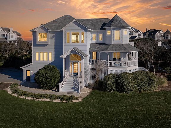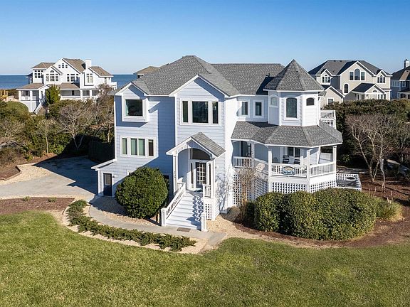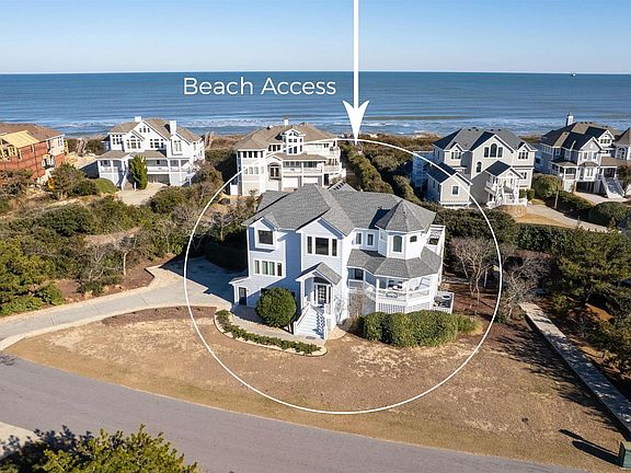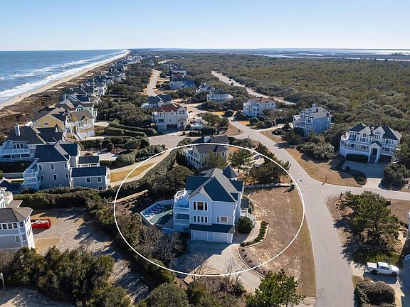 ALL NEW Siding and updated interior! Stunning, impeccably well-maintained, and professionally appointed turn-key ready home on the semi-oceanfront boasting 6 bedrooms, 5.5 baths, captivating views of the ocean, and high quality updates throughout! Serving as a full-time residence in recent years, the owners left no stone unturned when updating the home to make it their own, and it shows like-new! An open concept living room with oversized windows lets in tons of natural light and showcases the surrounding ocean views. Custom shelving, updated LVP flooring, a half bath, and recently remodeled gourmet kitchen with custom cabinetry, countertops, tile backsplash, stainless steel appliances w/ additional dishwasher + wall oven, coffee bar, island, and dining seating is the perfect place to host groups of friends and family. The top floor master en suite offers a spacious layout with updated carpeting (new flooring in all bedrooms), direct deck access, and a recently renovated bath with his and her sinks, storage, and a custom tiled shower. A grand foyer entry invites you in and leads you to the second floor where you will find three en suites with updated baths, a theatre room with stadium seating ideal for movie night or gaming, and a laundry room. Watch the sun rise or set from the spacious covered porches surrounding the second floor. On the first floor, two spacious bedrooms, a large full bath with dual vanity and granite countertops, updated LVP flooring, storage space, and direct access to the two car garage and private pool and spa. Outdoor ambiance is at your fingertips with a recently resurfaced private heated pool (new pool heater), 6 person spa (added in 2022), spacious sun and covered decks, an exterior 1/2 bath, outdoor shower, expanded driveway for visitor parking, storage shed for beach and pool supplies, direct beach access to the wide sandy beaches of Corolla, and a short distance to Pine Island’s two community pools, playground, tennis courts, basketball court, and multi-use path for biking or jogging.