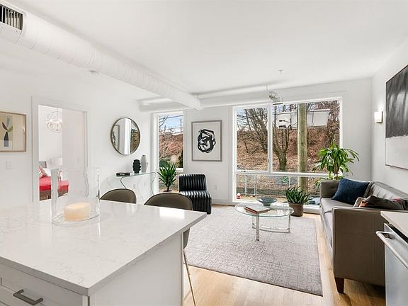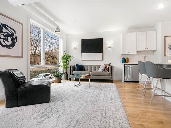Nestled in the peaceful charm of Downtown Village, this boutique condo offers contemporary design and thoughtful functionality across 790 square feet. The spacious layout includes two bedrooms, one bathroom, and an open concept living area flooded with natural light from expansive windows. The modern kitchen is equipped with custom white cabinetry, stainless steel appliances, and a large entertainer's island that provides additional seating. Convenience continues with an in-unit washer and dryer, dishwasher, and elevator access. Interior highlights include exposed ductwork, gleaming hardwood floors, and a central heating and cooling system, delivering comfort and style throughout the year. Located just minutes from Grove PATH and the vibrant Newark Avenue Pedestrian Plaza, this residence offers exceptional access to dining, shopping, and commuting options. Street parking is readily available. Pets are welcome for an additional monthly fee of $100 per pet.