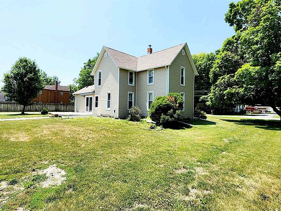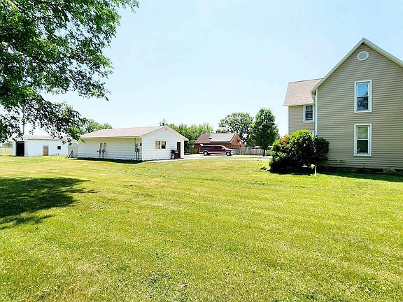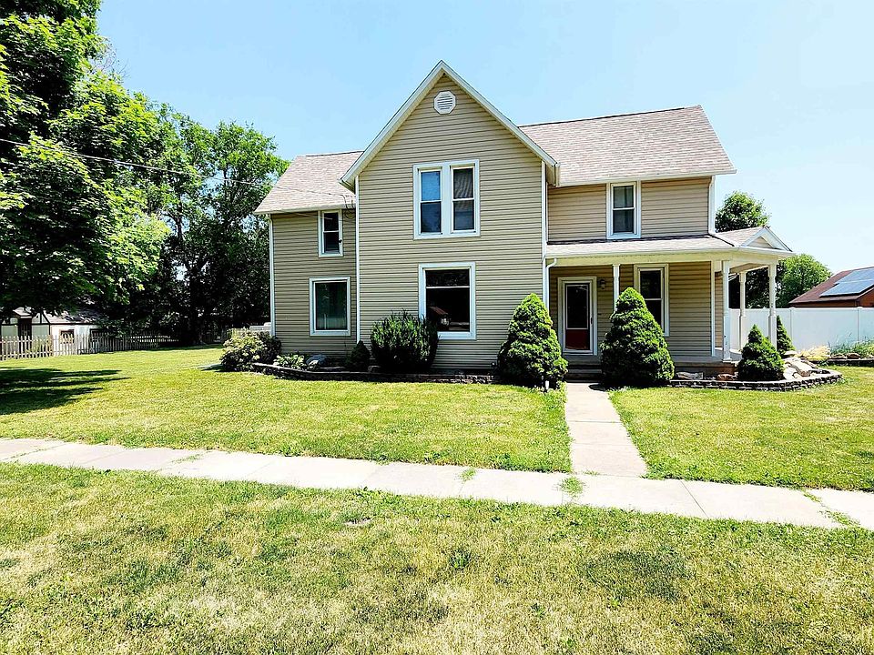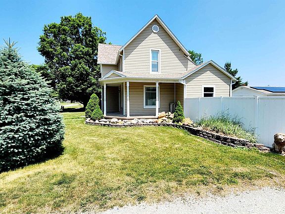 Don't miss this recently remodeled 4 bed 2 bath home on half an acre with solar panels to help keep the electric bill low! 3 car insulated and heated garage with air compressor and a shed. Large rooms and a spacious eat-in kitchen. Updates include newer drywall, siding, roof gutters, windows, water heater, disposal & extra-wide sidewalk to the garage. The back deck features a remote controlled Sun Setter Awning with pull down sunshade. The home is on a double lot and backs up to the ball diamond, park and open field and has mature, fruit bearing apple trees and a firepit.