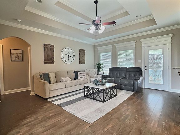 72 Hour Right of Refusal...Beautiful 3 Bedroom, 2 Bath Home with Outdoor Entertaining Space. This home in the heart of Iowa, Louisiana, offers both comfort and character. Featuring 3 spacious bedrooms and 2 full baths, it’s designed for everyday living and entertaining. Inside, you’ll find granite countertops, a stone tile backsplash, custom kitchen cabinets, crown molding throughout, and tray ceilings in both the living room and primary suite. The split floor plan places two bedrooms and a full bath on one side of the home, while the primary suite with private bath is tucked away on the opposite side for added privacy. Wood laminate flooring flows through the main living areas and bedrooms, with tile in the kitchen, dining, utility, and bathrooms for style and durability. The backyard is an entertainer’s dream, complete with a covered patio, fire pit, and wood privacy fence perfect for relaxing evenings or weekend gatherings. Conveniently located near schools, shopping, and I-10 access, this home offers the ease of small town living with quick access to Lake Charles and surrounding areas. Schedule your private showing today to experience all this home has to offer!