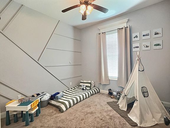 Split floor planCovered patioFire pitStone tile backsplashGranite countertopsWood privacy fenceCustom kitchen cabinets
