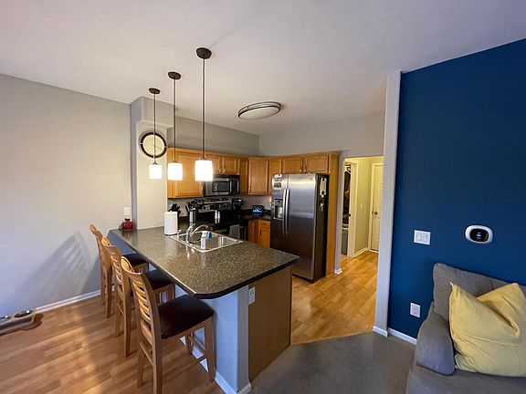 This two-story townhome on a private street in one of Norwalk's most popular neighborhoods has much to offer! Entry opens up into large living room featuring a gas fireplace with tile surround. Open to the dining room featuring hardwood laminate flooring. Kitchen features abundant cabinetry, breakfast bar and stainless steel appliances. Laundry room features convenient access to the attached garage. The second level features a large master suite with a tray ceiling and an en-suite bathroom. There are two additional bedrooms and another full bathroom on the upper level. Walk out basement area finished with additional living room space. Mowing is included. Pet restrictions.