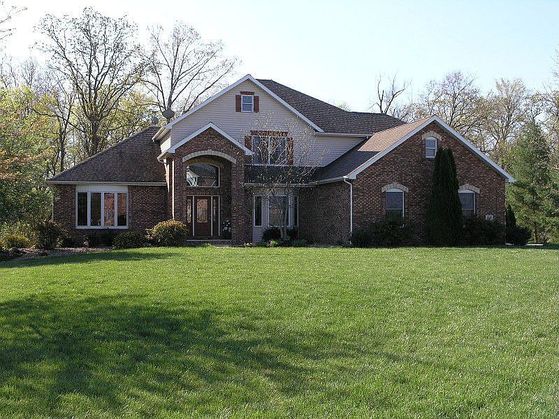 This is an incredibly impressive & spacious 6 bedroom, 5 bath 1.5 story brick home backing to trees on 1.18 acres. The large foyer enters to the office w/ built in wood bookcases & storage area. There is a bedroom & full bath on main which all can be closed off for In-laws if desired. Huge family room w/ built in entertainment center & great view of yard. Formal DR has chair rail & wood fls. Huge kitchen w/ cherry cabinets, Corian counter/breakfast bar, double oven & looks into hearth room w/ stone gas fireplace & full service bar. Kitchen walks out to maintenance free deck. Upstairs is huge master suite w/ luxurious master bath & huge walk in closet as well as 2 other spacious bedrooms & full bath. Walkout basement offers bedrooms 5 & 6 w/ walk in closets & egress windows. Basement also has huge rec area, family room w/ brick fireplace & a full service bar & finished work room w/ cabinets. 9' ceilings on main & lower level, 6 panel wood doors, 3 car finished garage, Pella windows.