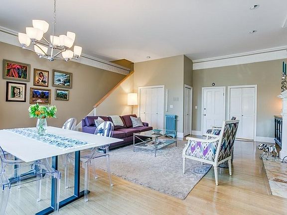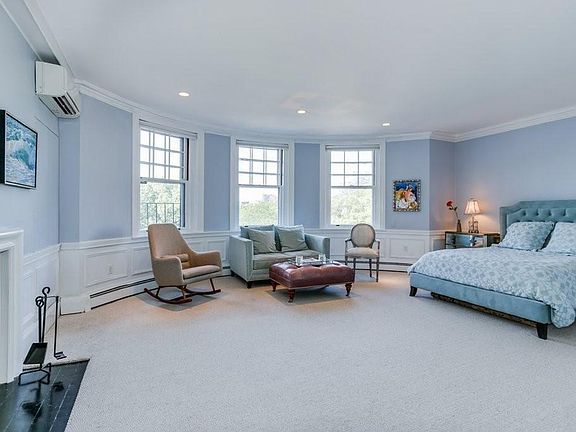 Pristine 2 bedroom/2 bath duplex on riverside Beacon features private outdoor space and parking. Spacious open living/dining room with eat-in bay and extra large fireplace features crown molding and significant original detail including marble mantel and over-sized curved double-paned windows. In-laid marble floor leads to 2nd bedroom with walk-in closet and bath. Contemporary kitchen offers huge pantry/storage space under stairs. Sumptuous master bedroom with fireplace has brand new custom closet and en suite granite bath with walk-in shower. Two private decks with seasonal river views. Parking space behind building included in rent! Available May 1st!