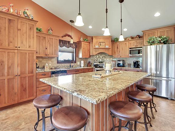Contact Jason Tysdal 605-641-7260 or Rick Tysdal 605-641-4130 at CENTURY 21 Spearfish Realty for more information. Welcome to this stunning 4-bedroom, 4-bathroom townhouse, a perfect blend of elegance and comfort, ideally situated in a prime location. The exterior boasts exquisite rock landscaping and stone veneer siding, creating a captivating curb appeal. As you step inside through entryway, you'll be greeted by a spacious living room adorned with vaulted ceilings, a cozy gas log fireplace, and expansive windows that flood the space with an abundance of natural light. The kitchen is a chef's dream, featuring sleek granite countertops, beautifully crafted wooden cabinetry, incredible gathering island, and stunning wooden floors that add warmth and character. Adjacent to the kitchen is the dining room, where you can access the covered deck offering breathtaking views. On the main level, you'll find the primary bedroom suite, complete with a luxurious ensuite bathroom. Another well-appointed bedroom and bathroom on this level provide convenience and versatility. The expansive basement is designed for entertainment and relaxation, featuring a wet bar, a third gas log fireplace, and a walkout to the patio. Additionally, this level houses two more spacious bedrooms, each with its own large bathroom, ensuring ample space and privacy for family or guests.