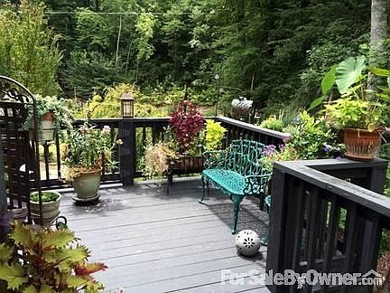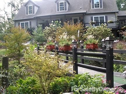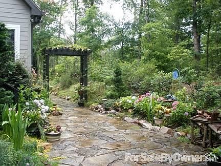 A gardener 's dream home. Must see home in beautiful Riverbend gated community. With 2 private lakes, great fishing, beach, waterfalls, large pavilion available for private parties. Great well and septic. Beautifully landscaped as a low maintenance mountain retreat. Flagstone walkways throughout, fire pit, arbors and workshop/gardeners house with water, electric and covered porch. Home could be year round or great as an investment home. Very private. Located at the back of the community. Home has many upgrades- ceramic tile, hardwood floors, gas ventless fireplace, low-e glass double pane windows and a standby generator. Also has large covered porches and a hot tub. POA fees of $400 per year for the many amenities. The perfect place for those who love Mother Nature's best works. Whether sitting out late at the fire pit area or at the the outdoor living room you will feel like you are always on vacation! Home showed by appointment only.Additional property info: http://www.forsalebyowner.com/listing/4-bed-Single-Family-home-for-sale-by-owner-414-Bird-Dog-Blvd-28746/23996937?provider_id=28079