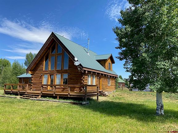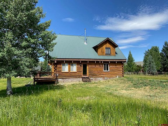 This rustic two story log home is situated on a 1 acre+ parcel adjoining a four acre common area and pond in a well established and desirable neighborhood. The south facing exposure supplies ample solar gain during the day and provides a sunny living room to enjoy during chilly winter afternoons. The kitchen, dining area and living room share a great room with vaulted ceiling. A small loft overlooks the great room. The home features 2 bedrooms on the main level, one of which has an on-suite bath with a second bath just off of the kitchen. The master suite is upstairs with terrific views of the Ohio Creek valley. Enjoy summer mornings on the south facing deck. There is plenty of room for your vehicles and toys in the detached three car garage.
