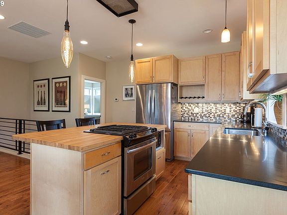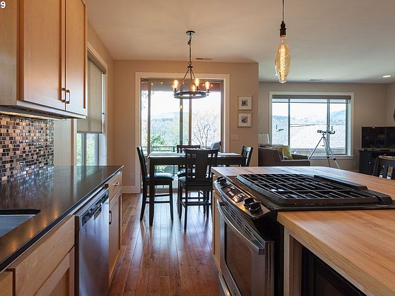 Beautifully appointed 3Bd/2Ba home boasts a gorgeous kitchen w/granite & butcher block counters, hardwood floors & SS appl & is open to living/dining rms & deck w/river views. Located in the heart of downtown Hood River; perfect for enjoying great restaurants, shopping & the Indian Creek Trail. Includes an oversized 2 car garage for plenty of storage, as well as heated tile floors in bathrms & a spacious master suite w/walk-in closet.