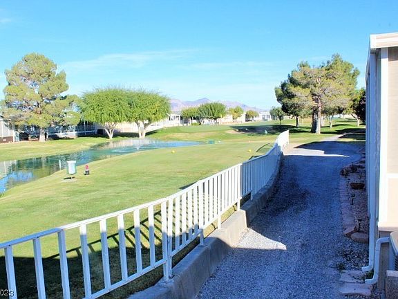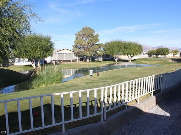 AMAZING GOLF COURSE VIEWS in LOVELY GATED DESERT GREENS 55+ COMMUNITY in the heart of Pahrump! NOT A LAND LEASE, LOT IS INCLUDED! UPGRADED HALLMARK MODEL features OPEN LIVING-DINING-KITCHEN w/Island, all appl will stay. Wood/Lam Flooring in all main areas w/carpet in bedrms. Step out on the newly rebuilt covered deck to enjoy the EXPANSIVE VIEWS of GOLF CS and Pond. Spacious Primary Bedrm plus ensuite w/ walk in closet & jetted tub. Guest Bedrm and Guest Bath, PLUS OFFICE/DEN could be 3rd Bedrm. Screened in SunRoom, plus nice Workshop/Shed. Solar Screens, Continuous Hot Water Htr, epoxied Covered 2 car driveway. Some furniture can be included. WONDERFUL COMMUNITY with many activities, Beautiful Clubhouse and many great neighbors. These homes don't last long, call today.