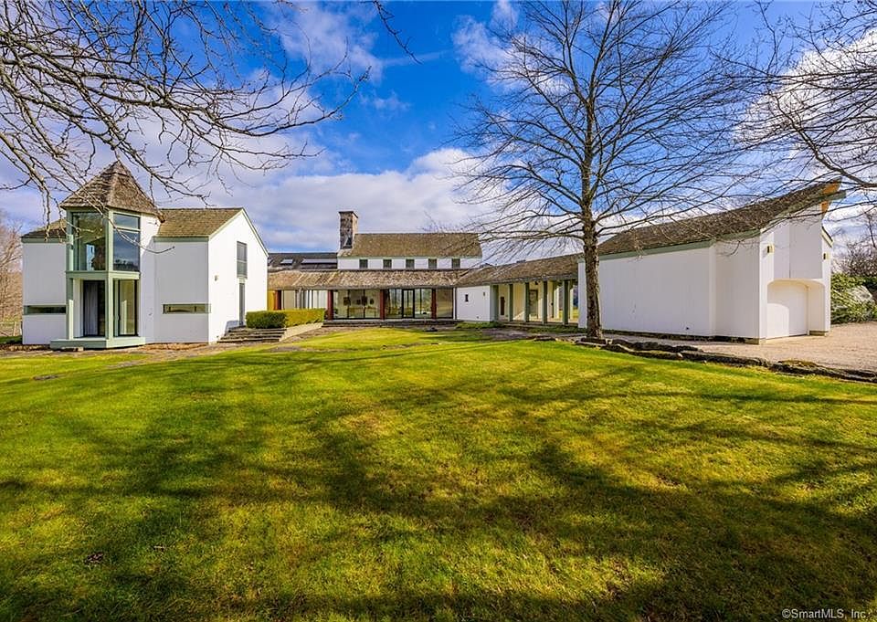 Gentle meadows and Brewer Brook create a tranquil and private setting for this modern masterpiece. The integration of the indoors with the outdoors is beautifully executed. The sight lines thru the interior and exterior spaces are superb. A magnificent two-story living/dining room with massive field stone fireplace is at the heart of this home and opens to pool/jacuzzi terrace and the view on one side. A glass enclosed gallery runs the length of the house on the other side. The kitchen is well designed with a large marble island. A gracious primary suite and two guest bedrooms are on the main level. A mahogany staircase leads to a studio space, perfect for home office or additional guest space. The 16 acres is surrounded by protected woodlands, has pear and apple trees and is ample enough to add a guesthouse, tennis court, pool house, etc. Designed by Debora Reiser and featured in House Beautiful and Inside Architecture.