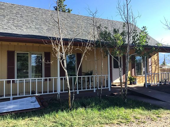 Victorian Style Home in Downtown Silver Cliff. Here is a home with a country feel in the small town of Silver Cliff. The property is 4 lots in the middle of the block on a quiet street. The home is one level. There is a ramp to the back entrance and a ramp to the front porch. The front porch provides a cool spot for summer days and evenings. The backyard has a herring bone brick patio and a protective brick hearth for your grill. There is a 8'x10' shed behind the house in the fenced yard. The home is built on two of the 4 lots. The other two lots are fenced and empty. The empty lots are west of the house providing a protective view of the Sangre De Cristo mountains. The empty lots could be an area to install solar panels. The house is heated with electric baseboard heaters. The kitchen cabinets are stylishly painted to enhance the terra-cotta tile counter tops. The bathrooms both have tile flooring and so does the sun room. A new asphalt roof was installed last June. The deer in the yard and birds in the 40 year old fir trees create a country feeling to this property.