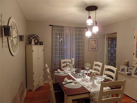 Gorgeously updated & move in ready home! 3 bedroom, 1.5 bath, stunning basement family room too! Fenced yard. Spacious driveway for off street parking. 1764 sq ft includes finished basement. Close to Cree, NYS thruway. 3rd bedroom presently formal dining room. Deck, fenced yard & firepit area make this even more appealing.