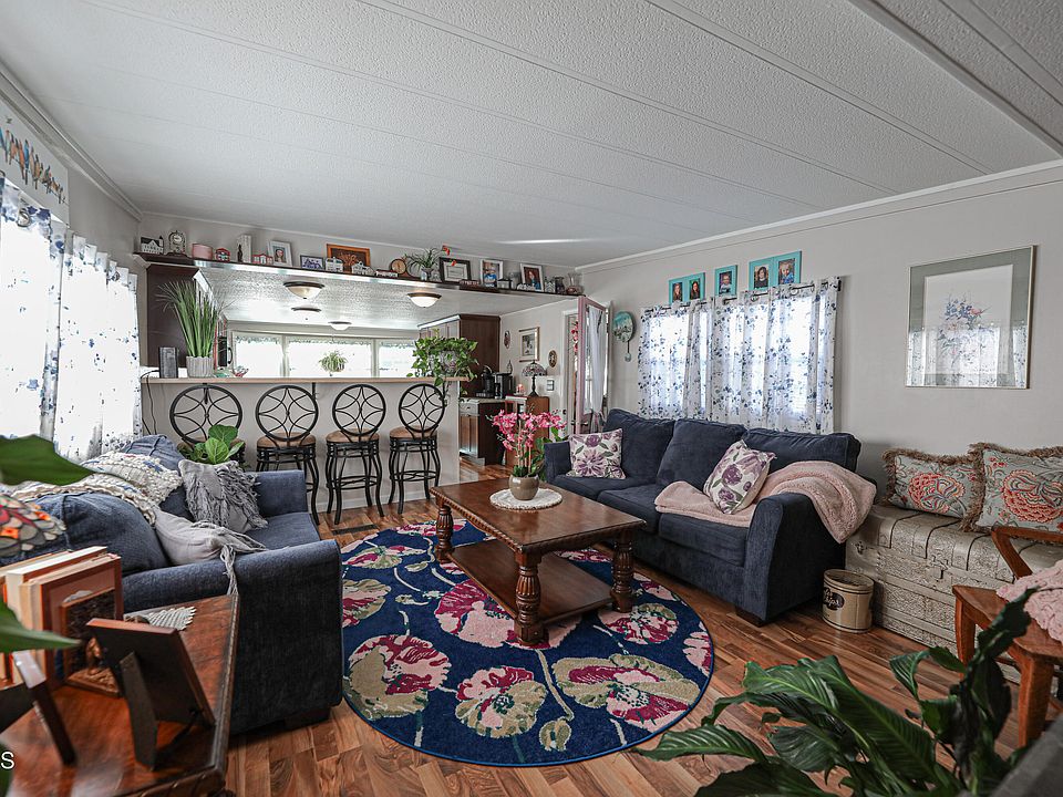 Welcome home to Tatley Meadows! This home sits on a great lot with trees and close to the playground. Upon entering the home is a cozy entry way. The kitchen has gorgeous updated cabinets and stainless steel appliances. The kitchen also has a large bay window. Rounding out the kitchen there is a large counter for stools. The living room has windows on each side, letting in great sunlight. Down the hallway are two bedrooms and a full bathroom with laundry. There have been numerous updates done to the home! A new silicone roof was added 2023, new heat tape was added in 2023, new shed in 2023, new shutters, lattice work, and painted deck all done in 2023 in addition to some landscaping with rock and perennials. Additionally, there was some electrical updates. The tiered deck is great for hosting or just enjoy the serene outdoors. The home is a 1976 Windsor 72x14. Don't miss your chance to own this well cared for home!