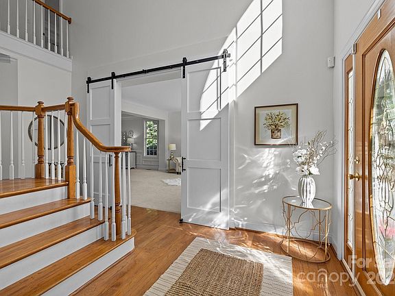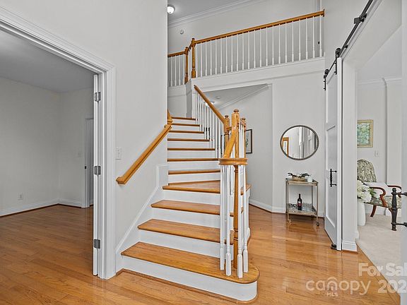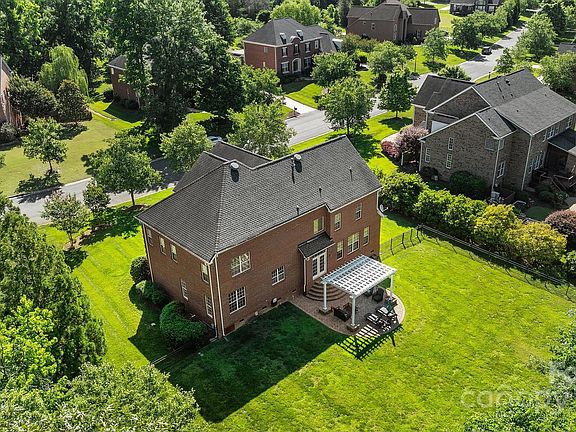 This light-filled full brick luxury home boasts a private fenced backyard with a lovely view of mature woods & trees. A dramatic two-story foyer and greets you upon entry. The formal living has large barn door that can be closed for a cozier feel or to hide a play area. The large office has glass French doors with direct access to a closet and full bath. The chef’s kitchen boasts a large island, walk in pantry, counter height breakfast area and is open to the family room. The family room has wired surround sound, built in bookshelves and back staircase. Retreat at the end of a long day to an enormous master that has a large sitting area, dual closets & vanities, separate shower and jetted soaking tub. The bonus room/bedroom has access to a closet and full bath. The ensuite upstairs bedroom could be a 2nd master suite. With an oversized 3 car garage, .80 Acres, Weddington schools and walkable to Target, restaurants and shopping, this home has it all!