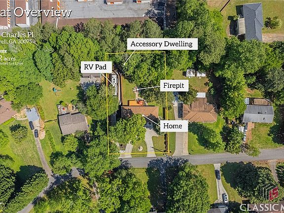 Welcome to the highly sought after city of ROSWELL! This TREE -LINED city is conveniently located about 20 miles north of Atlanta. Here you'll appreciate the historic charm, countless cultural affairs, markets, recreational events, eclectic shops and eateries, verdant trails along the VICKERY CREEK BASIN, CHATTAHOOCHEE PARK, RIVERWALK, and NATURE CENTER. Suitably within a 5 minute drive to DOWTOWN ROSWELL and CANTON ST- Upon entrance of this delightful RANCH you will be pleasntly surprised at the abundant space in every single room. The kitchen boasts WHITE SHAKER STYLE CABINETS, gorgeous BUTCHER COUNTER TOPS, A COOKTOP ISLAND WITH A BAR OVERHANG FOR EXTRA SEATING, STANLESS STEEL APPLIANCES, and ALLURING MOSIAC TILES. The primary bedroom includes a WET BAR, a DINETTE, a STONE RAIN SHOWER, and a private entry MUDROOM that leads to the backyard. The copacious DECK overlooks a beautiful yard perfect for enjoying nature, soaking up the sun, grilling, or to cozy up by one of the FIREPITS. The ASSESORY DWELLING/GUEST SUITE includes a living room, kitchenette, full bathroom, and sleeping nook. Situated within a private entry yard that allows for relaxing on the hammock or lounge chairs, or have a fun game of horseshoe pitching. The well appointed RV PARKING PAD includes a 50 amp electric plug. NO HOA- Ideal for owner occupant, long or short term rental, RECOGNIZED AS A SUPERHOST HOME ON AIRBNB and offers 3 SEPERATE RENT INCOMES! Come by, enjoy a tour, and appreciate all this TRULY DISTINCTIVE HOME has to offer!