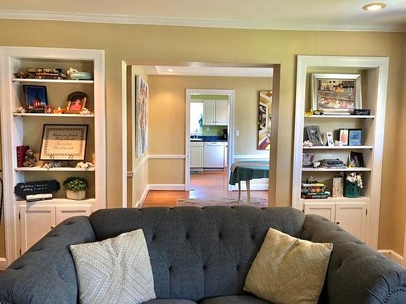 Beautifully maintained home with open floor plan and gorgeous hardwood floors. Large living room with built-in bookcases and fireplace, dining room, sunny kitchen with white cabinets, sunroom makes a great office or playroom! Washer and Dryer provided. 2 car garage with fenced in back yard. Prime location across the street from Holy Trinity! Tenant pays for utilities and yard maintenance