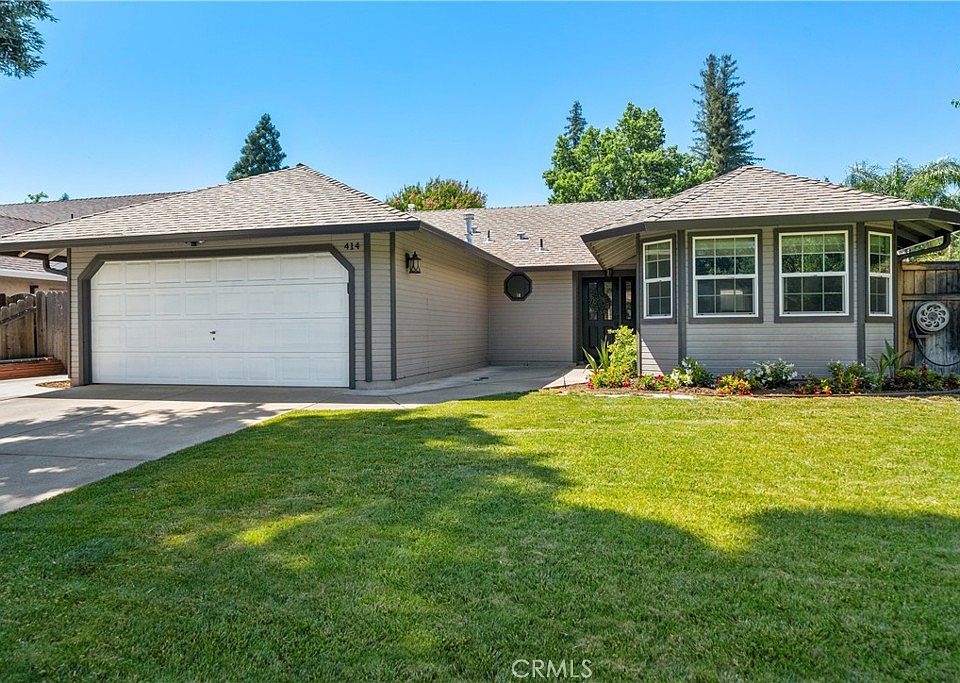 Just in time for Summer! This 1,556 sf home sits comfortably on .18 acre with a back yard space that showcases a beautiful pool with a waterfall feature. The home has 3 bedrooms PLUS a den, 2 full bathrooms and an indoor laundry room. The kitchen has been tastefully updated with concrete counter tops, tile backsplash, glass door cabinetry, counter height bar seating and stainless steel appliances. The primary bedroom has an en suite bathroom with dual sinks and a walk in closet. Dual pane windows throughout the home. Tankless hot water heater. Front and back yard are fully irrigated. Large side yard for storage.