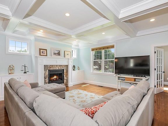 Simply stunning! This meticulous home sits on nearly an acre of manicured grounds, overlooking the 10th fairway of Indian Pond Country Club. You will love this Nantucket inspired design which blends quaint, traditional New England architecture with sophisticated style and quality finishes. An open concept main level features quality custom mill work, including coffered ceilings, beadboard and built-ins. A dream kitchen boasts an over-sized two tier Island, custom cabinetry, premium appliances, granite, subway tile, a dining nook and a butler's pantry. Additional features include a fully appointed master suite with gorgeous mater bath, generous bedrooms, gleaming hardwood floors throughout, Solid stone surfaces throughout, central air, well-water irrigation and so much more. This absolute beauty is not to be missed! Just steps to the club house, neighborhood pool & shops. A 10 minute walk to the T. Close to the highway, beaches and all that this blustering community has to offer!