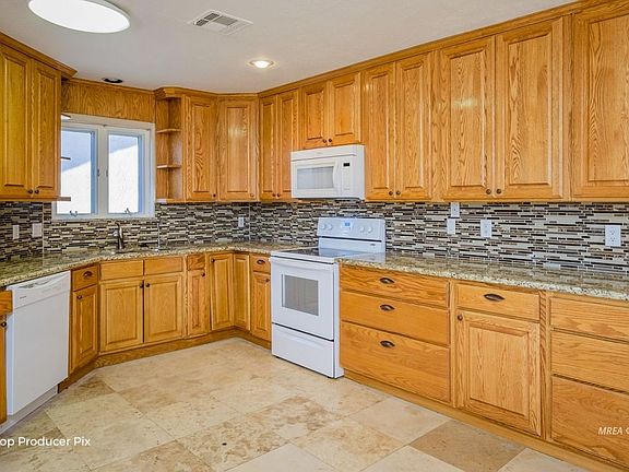 KITCHEN REMODELED ....Stunning Granite and glass tiled backsplash. Rare hard to find "Large 4 Car Garage" ! Simply stunning southern views of the mountains are a hallmark of this property.. This CUSTOM BUILT residence has TWO exceptionally large OUTDOOR entertaining areas. The spacious ALL TILED covered patio has a TILED BUILT-IN COUNTERTOP with a sink and cabinets. Kitchen offers GRANITE COUNTERTOPS with an abundance of cabinetry. Entryway, Living Room and Kitchen are newer 20 x 20 tile. LARGE PICTURE WINDOWS in the living room brings the beautiful outdoor views inside. THREE MASTER BEDROOM SUITES are unique to this home. Spacious 2nd floor family room is large enough to have a pool table. Custom railings accent the staircase with open views down into the living room. This makes an excellent game room which has a walkout balcony with top dollar VIEWS, VIEWS, VIEWS. There is a MAN CAVE in the center of the garage...perfect getaway for him.