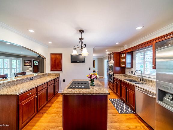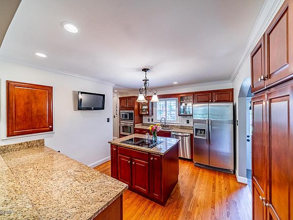 Beautiful & charming 4 bed/3.5 bath ranch home in sought after Windy Hills subdivision! Features open layout, new windows, crown moldings & hardwood flooring throughout, updated kitchen & baths, lots of natural light, built-ins, lovely curb appeal & the addition of a master bedroom ensuite 2.5 yr ago. Kitchen has granite counters, breakfast bar, stainless steel appliances, built-in oven & separate stove. Living room has a fireplace, separate sitting area with built-in bookcase & is open to the dining room which is open to the family room with vaulted ceiling, exposed brick & entry to the back patio. Master bedroom has a custom organized walk-in closet, high-end full bath with dual sink vanity & a large subway tiled, walk-in shower & a separate entrance to back patio. Main level also