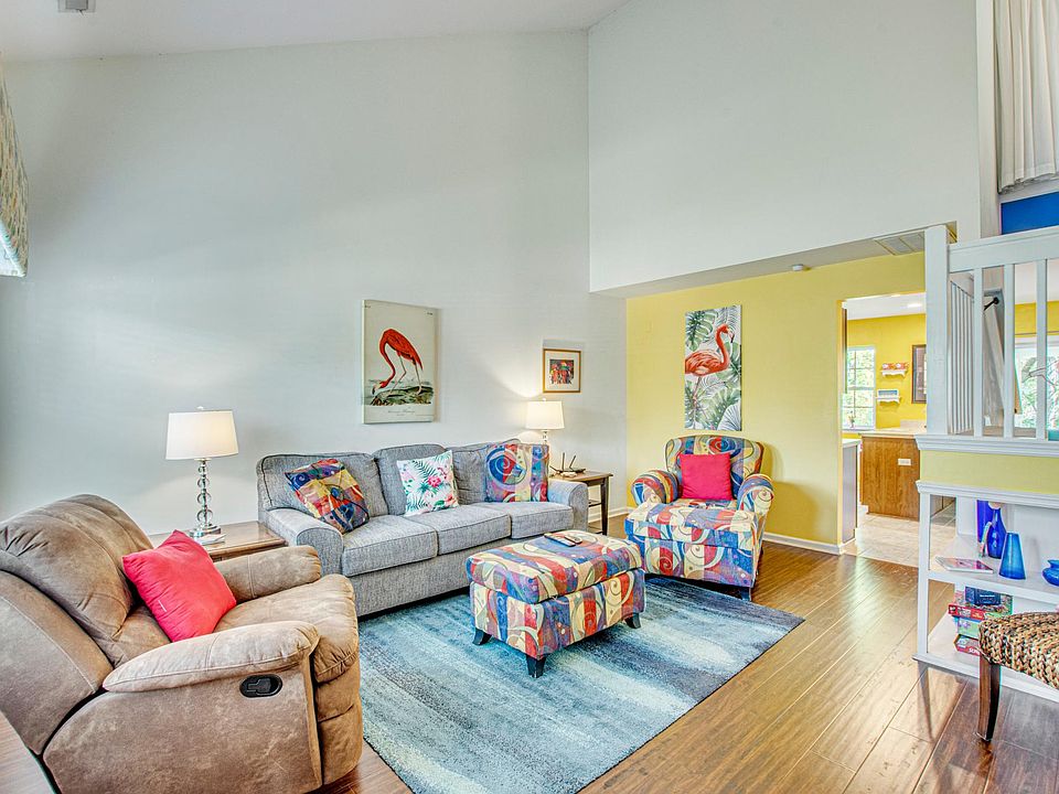 Welcome to the fully furnished Flamingo Roost! This quiet, brightly themed, residential townhome provides space for spending time with family, while also providing for separate areas when needed. The spacious bedrooms are positioned on either side of the home, so each one offers you a quiet retreat at the end of the day. Downstairs, you'll find one bedroom boasting a king bed and en-suite bathroom, complete with his-and-hers sinks for a spa-like experience. The double-wide closet and 5-drawer dresser provide ample space to store your clothing during your stay. To top it all off, enjoy the 55" LCD TV, or curl up with a book using our handy reading light next to the bed. The open kitchen is perfect for making breakfast or a big dinner for the family, and don't worry! Everything you'll need to prep and cook like a professional chef is provided. Stainless steel cookware, silicone cooking utensils, and plenty of dinner- and glassware await you! Upstairs you'll find two additional bedrooms and the second bathroom, connected with an upstairs hallway and a curtain for added privacy. The king bedroom offers forest views and a small closet for incidentals, while the twin bedroom provides an open space for kid's play or TV watching. The hall bath is accented with a wide counter, perfect for prepping for a day at the beach or a romantic night out! NOTES: -All utilities included -Security deposit of 1 month's rent -Two uncovered, designated parking spots available -Smart lock and thermostat -Background/eviction check required -Proof of employment or travel contract required -Pets not preferred, but I am willing to negotiate based on breed and size -Minimum lease of 30 days, maximum of 6 months (negotiable) -All utilities included in rent -Security deposit of 1 month's rent due at signing -Two uncovered, designated parking spots available -Smart lock and thermostat -Background/eviction check required -Proof of employment or travel contract required -Pets not preferred, but I am willing to negotiate based on breed and size
