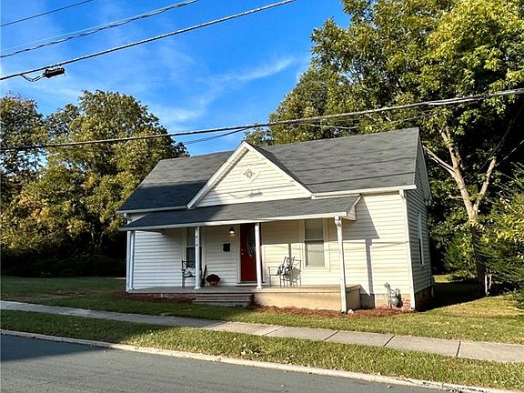 Back on the market! Buyer’s financing fell through..Excellent starter home or rental property. Historic charm can be found all around this adorable bungalow, from the antique raised panel doors, quaint fireplace mantels, hardwood flooring and large rocking chair front porch! 2 large bedrooms. Bathroom has been updated. Large kitchen, plenty of room for dining area. Features lots of cabinetry for storage includes electric stove and refrigerator. Replacement tilt-windows @ 2005. Roof replaced in 2011. HVAC replaced about 9 years ago. Side bricked patio from kitchen could make a great private retreat. Deep back yard with room enough for a garden. Home is being "sold as is, where is." Was surveyed in 1983 but was NOT recorded at the Alamance Co. ROD.