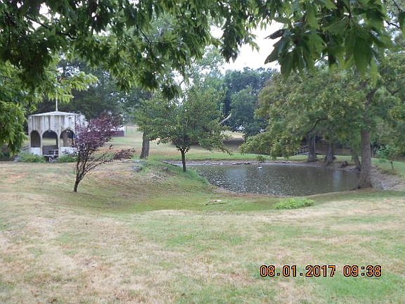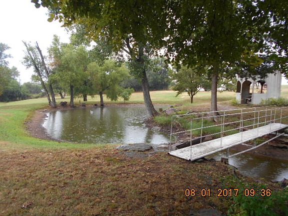 Beautiful 4.58 acs. w/2013 4-bedroom, 2-bath mfd home and many extras! Two bridges over a lovely pond; 2 decks-1 w/pergola; gazebo overlooking pond; partially fenced yard. Open plan w/living/dining/kitchen; laundry; master suite has large bathroom and 30' long closet! Lovely built--ins in several rooms; electric fireplace in living room; central heat/air; all kitchen appliances stay. Barn and storage building.