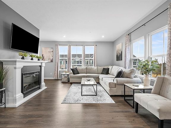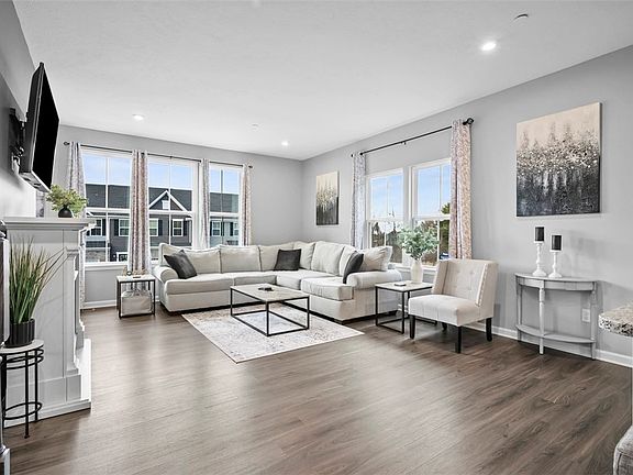 Welcome to your dream end-unit townhome thoughtfully expanded with a 4-foot bump-out to provide more living space and drenched in natural light from the abundance of windows. The open concept layout is ideal for entertaining, and you’ll love hosting in your chef’s kitchen, which features a 10.5-foot island, sleek Calacatta marble backsplash, and plenty of cabinet space. Upstairs, the spacious main suite offers a large walk-in closet and a luxurious shower with a full-length bench. The entire home has been professionally painted , and LVP flooring has been added to all stairs and the upper hallway for a cohesive, durable finish. Enjoy a finished basement, 12x20 TimberTech deck with a cocktail railing and stairs that lead to the private backyard, and beautifully landscaped exterior with river rock under the deck. Community amenities include a pool, clubhouse, fitness center, and rentable party space. Move in and enjoy luxury, convenience, and comfort