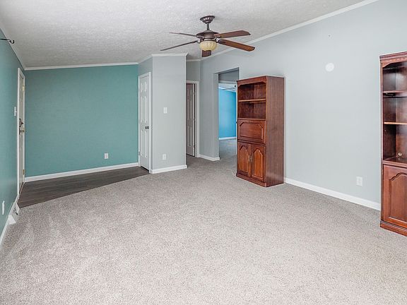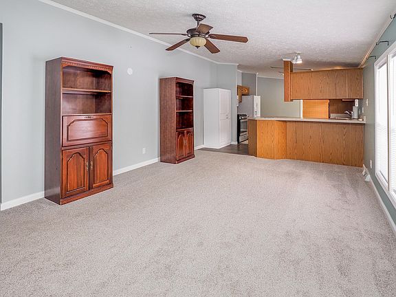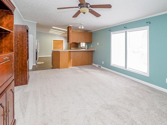 Move in ready manufactured home in Decatur Village. Interior features open concept between kitchen and large living room with vaulted ceilings, three master bedroom with private full bath, two additional bedrooms with large closets and second full bath. All new flooring throughout, fresh paint and some new appliances. Exterior features over sized 2.5 car garage, maintenance free vinyl siding, backyard patio and small storage shed. City water and sewer. All kitchen appliances and water softener included. Own this home for less than rent!
