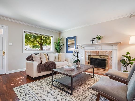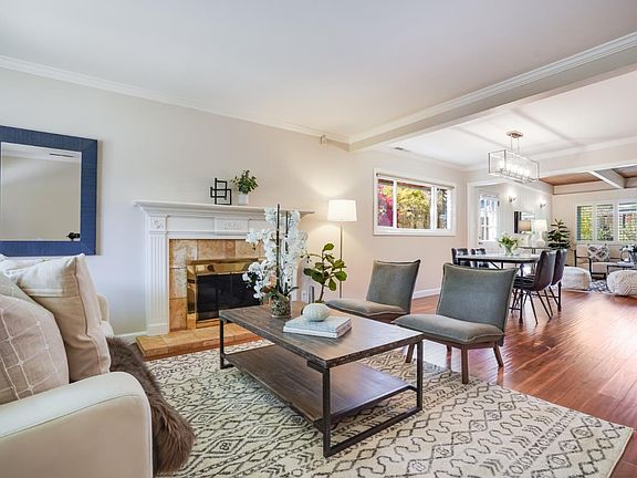 Move-in ready home in the desirable Sterling Downs neighborhood of Belmont! Large single-level floor plan featuring 3 bedrooms, 2 baths, plus a sizeable family room w/ doors to a beautifully landscaped level backyard. Elegant living room w/ wood burning fireplace leads to a formal dining room w/ picture windows looking out to the colorful flowers. Remodeled kitchen feat. granite countertops, tiled backsplash & breakfast bar seating. Oversized primary suite w/ 2 large closets & a spa-like bathroom w/ deep soaking tub, oversized glass shower & dual-sink vanity. Bright & updated hall bath has a skylight & high ceilings. Other feat. include: gleaming hardwood floors, double pane windows, plantation shutters, recessed lighting, crown molding, A/C & fresh paint. Incredible curb appeal w/ private front patio & an attached 2-car garage make this home a must see! Central location w/ close proximity to restaurants, parks, highly rated Belmont schools, shopping, Caltrain & access to highway 101.