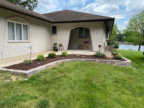 She's a BRICK.....HOOOOUUUSEEE! She's mighty, mighty - just letting it all hang out! 414 Holiday Drive is one of the few 4 sided brick Ranch waterfront homes with a completely FLAT, walkable lot all the way to the waters edge! You won't want to miss this stunningly unique home featuring 3 bedrooms, including an owner's suite!, on the main level, and 2 addt'l guest bedroom options on the walk-out level, plus 3.5 full bathrooms. From the moment you step in the front door, you are pulled towards the expansive water view! Starting with the kitchen feat. SS appliances, breakfast bar, loads of counter space, and ample pantry storage w/ a near by powder room. The kitchen flows seamlessly into the dining area + living area w/ a beautiful stone fireplace and wall to wall NEW sliding glass doors that lead you out onto the massive deck overlooking the lake view! The 1st floor bedrooms including the owner's suite are generous in size, all have custom closet organization, and the bathrooms are fully remodeled w/ marble flooring and stylish wall tile! Head down to the walk-out level and feast your eyes on your new hang out space complete w/ a FULL 2nd kitchen, 2nd fireplace, 3rd full bath, and 2 addt'l bedroom options. Plenty of space to spread out and enjoy all things lake life! Also on this level is a large laundry/storage room ideal for wet lake toys, etc. Last but not least, head out to the HIGHLY COVETED FLAT LOT leading all the way to the dreamy lake front deck! Pour yourself a drink and soak in the calm Summer nights! All members of the family, young & old alike, can enjoy the lake w/ ease and reap the convenience of a rare fully walkable lot! There is so much NEW in this home that you truly can rest assured you can focus on having BIG FUN at the lake instead of maintenance. Home improvements include: owner's suite & hall bath remodels ('20), Sliding glass doors ('21), new carpet ('21), furnace & A/C ('22), updated electrical panel ('21), Generac generator ('20), high efficiency HWH ('20), Aprilaire ('20), fridge (3yo), stove ('21), custom closet organization in all closets, & more! Pool table & boat pier included in the sale. Boat lift new in 2021 is negotiable outside of the home sale. "Be On Vacation Every Day of the Year!"