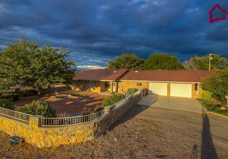 Beautiful views of fields & valley. Well-kept 3 BR/1.75 Ba home approx. 2.5 miles from city limits. 2 wells (domestic & irrigation), EBID rights, big yards w/fruit trees, 6x9 shelved storage inside gar plus sep. 12x12 strg. shed or workshop. 2 Dona Ana Mutual Domestic Water Meters & natural gas.All on 1 parcel containing 1.760 acres. New Anderson tint windows (clean from inside) & ceiling fans add to efficiency w/ref. air & water softener. NEW tile flooring in main area, Kitchen & Master & NEW paint outside. LivRm has Oakley Stove w/deco. hrth. Sun RM has tiled flrs,Low-E windows & electrical outlets.Oak Cabinets & granite kitchen counters; large pantry & island. Copper Metal roof. RV hookup. 40 x40 carport & 2-car gar. Horses allowed. Anyone would be proud to call this HOME. DOM long, but now surrounding land sold & site blt home will be constructed immediately. Sq.Ft. price includes 1.76 acres. You would be proud to call this ''HOME.'' A MUST SEE!