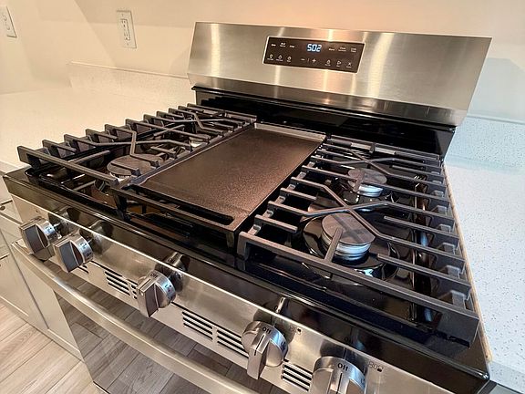 Single-bowl kitchen sinkHigher level tile showerQuartz counters in bathroomsStone on the exteriorGas rangeUpgraded faucetUpgraded cabinets throughout home
