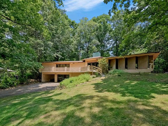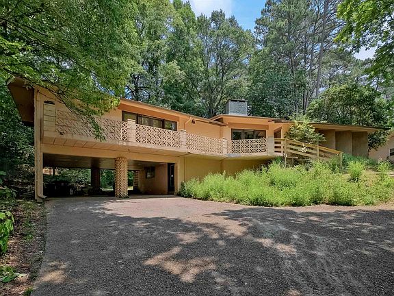 Mid-century modern home on .85 acre lot zoned for Shades Cahaba Elementary! Built of solid concrete construction, the architecture of this home is a rare find in Homewood. Purpleheart hardwoods floors throughout were installed to align with the floor-to-ceiling cascade of windows in living room. Vaulted kitchen features original inset cabinets with mid-century legs, copper sink, and gas cooktop. Kitchen is open to dining/breakfast room with sitting area in front of focal brick fireplace. The perfect home for entertaining! This home is also ideal for the collector or book lover with custom shelves and bookcases in many rooms. Mudroom off kitchen offers easy access to the private backyard and side patio. Primary bedroom has walk-in closet, en suite bath and sitting room/office that could be converted to a 3rd bedroom. Downstairs is a storage area connected to a 2-car carport. Rare opportunity to make it your own, renovate or build your dream home in Homewood.