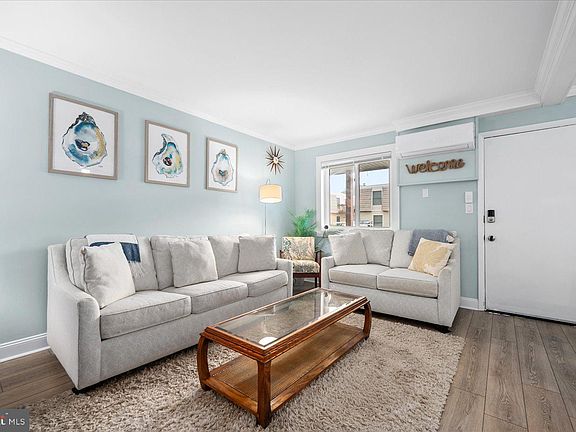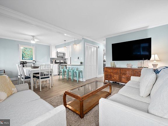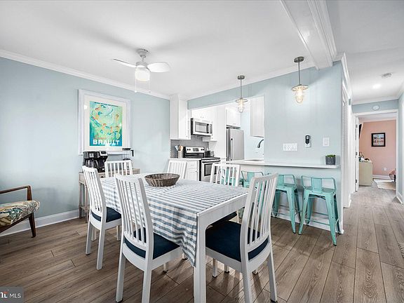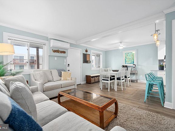 This first floor unit was completely renovated in 2020 and features an open and updated kitchen with Wolf shaker soft close cabinets, quartz countertops and stainless appliances, vinyl COREtec flooring throughout, drywall and fresh paint, upgraded 5 panel interior doors, updated light fixtures, ceiling fans and recessed lighting, and an updated bathroom with glass subway tile. As part of the remodel, the once traditional galley style kitchen was opened up allowing for extra seating with a cute 4 seater breakfast bar. The water heater was also replaced along with a stacked front load washer and dryer and 3 ductless mini-split units for heating and cooling. There is a lockable owner's closet for added convenience. Adorably decorated and with the many upgraded finishes, this unit shows very well and is being offered fully furnished and turn key . With 2 off street parking passes, this convenient location gives you the option to park the car and easily bike or walk to the beach, boardwalk , many nearby restaurants, mini-golf or the rides and waterpark at Jolly Rogers. Looking for a low-key day, enjoy the private community outdoor pool or picnic areas with grills available for your fresh catch.