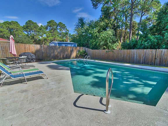 Oh my! My favorite community of Riviera Beach has a doll house with a pool available! Great investment piece on a 50x130 lot. This cute beach cottage has awesome features such as: granite counter tops, vaulted ceilings, open floor plan, sweet, screen porch overlooking the inground pool, carport and totally fenced yard. Now lets talk about the great location. This home is located on the sought after, West-end, golf cart friendly community of Riviera Beach. The beach is only a few blocks away. Carillon beach and 30A are just a few minutes going west. Pier Park & Frank Brown Park are a few minutes away going east. This is a nice investment piece. Sold rental ready. Don't wait too long. Homes like this are not lasting very long.