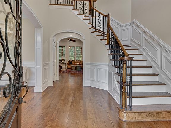 Magnificent executive style home located in Chapel Hill's picturesque The Legacy at Jordan Lake's short-iron golf course gated community with swimming, tennis, playground, gym and private neighborhood trails. Experience the home's splendor as you enter the 8' double arched doors into the roaring 20' ceiling foyer with a curved staircase, wrought iron balusters & 12 lampshade chandelier. The splendid Great Room lives large but comfortably with a floor-to-ceiling stacked stone gas fireplace flanked by custom cabinetry, 15' coffered ceiling and a wall of transomed windows overlooking the screened in veranda and outdoor al fresco dining. The Main level Primary Suite and Guest Suite offer convenient 1st floor living with 4 bedrooms and a media room (with home theater seating) on the second floor for additional living space or entertainment. The lavishly equipped Epicurean Chef's Gourmet Kitchen includes Thermador appliances. Additional Prep Catering Kitchen/Laundry Suite off of the side entry Drop Zone for special events. Easy access to all Triangle locations, RTP, RDU, Chatham Park, DTR, Cary, Apex, Durham.